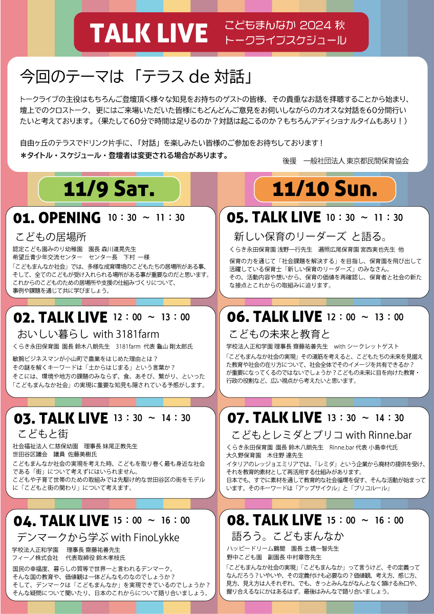 11/9(土)、10 (日)に東京・自由が丘で開催する 保育イベント『こどもまんなかテラス トークライブ』に 学校法人 正和学園 理事長 齋藤祐善が登壇します。