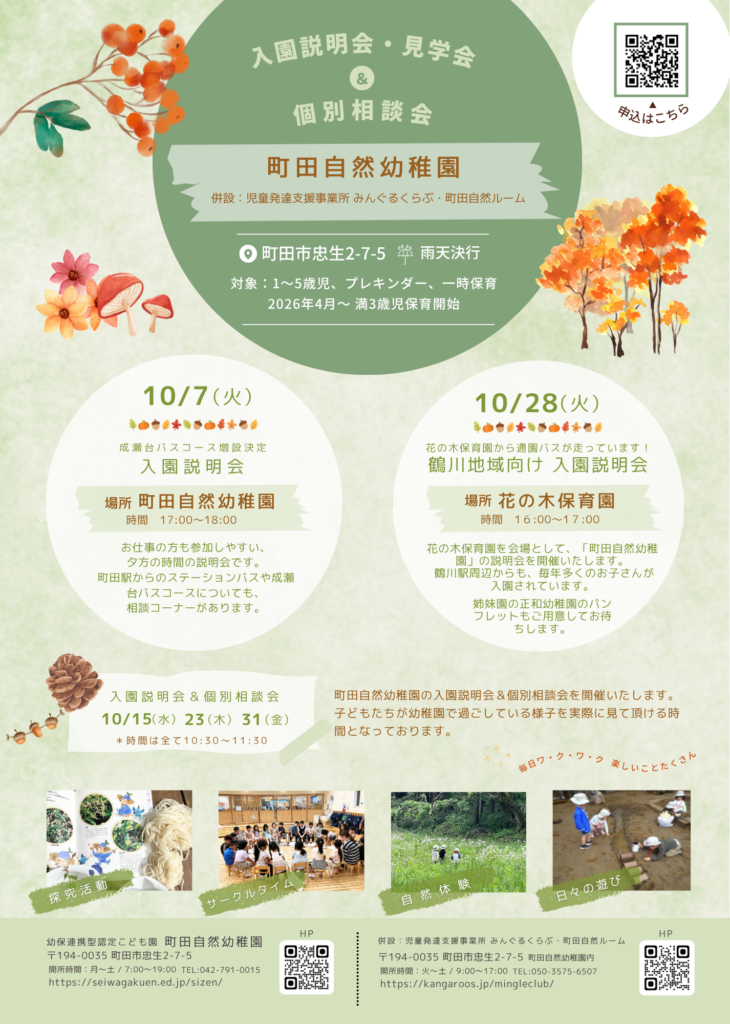 🌿町田自然幼稚園 入園説明会・見学会&個別相談会のご案内