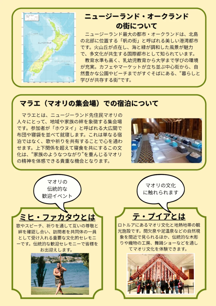 多様性を尊重する教育観、マオリ文化との共生など、ニュージーランドならではの保育のあり方にふれる3日間です。