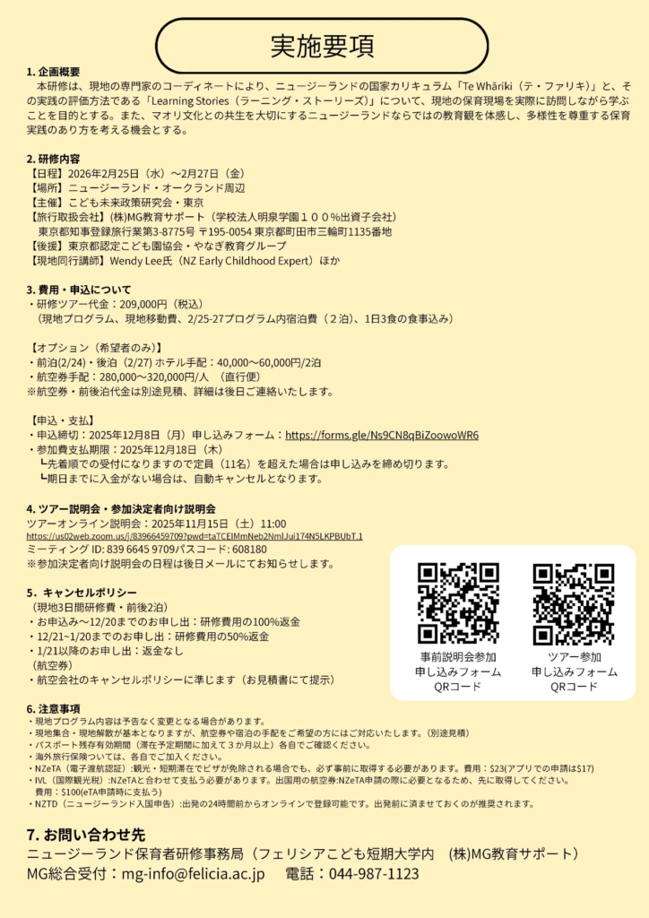 ニュージーランド保育者研修事務局(フェリシアこども短期大学内 (株)MG教育サポート)