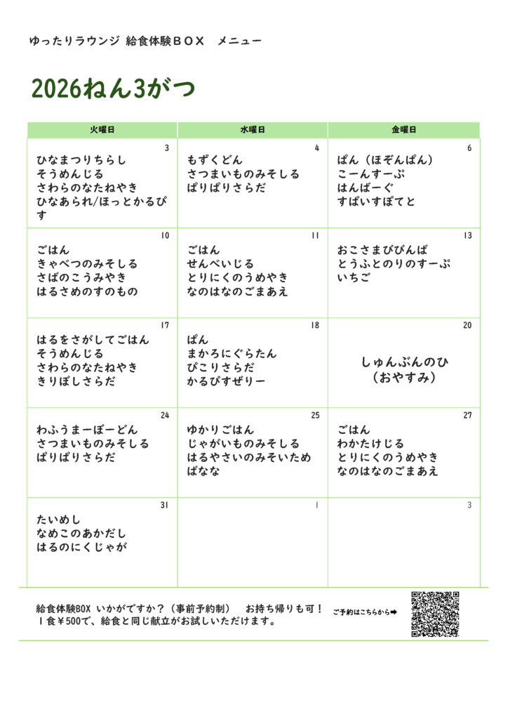 🍱 給食体験BOX(事前予約制)