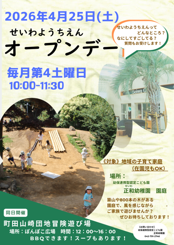 【正和幼稚園】せいわようちえん オープンデー開催のお知らせ