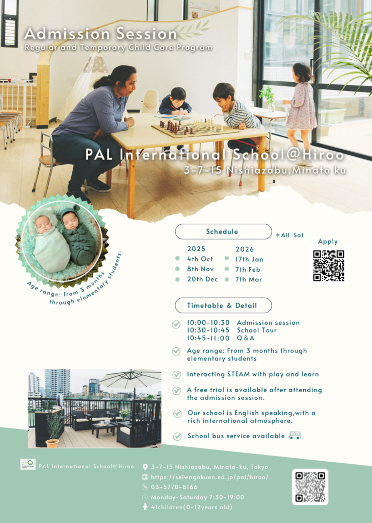 PAL International School @ Hiroo invites parents to our Admission Sessions for those interested in our Regular and Temporary Child Care Programs.