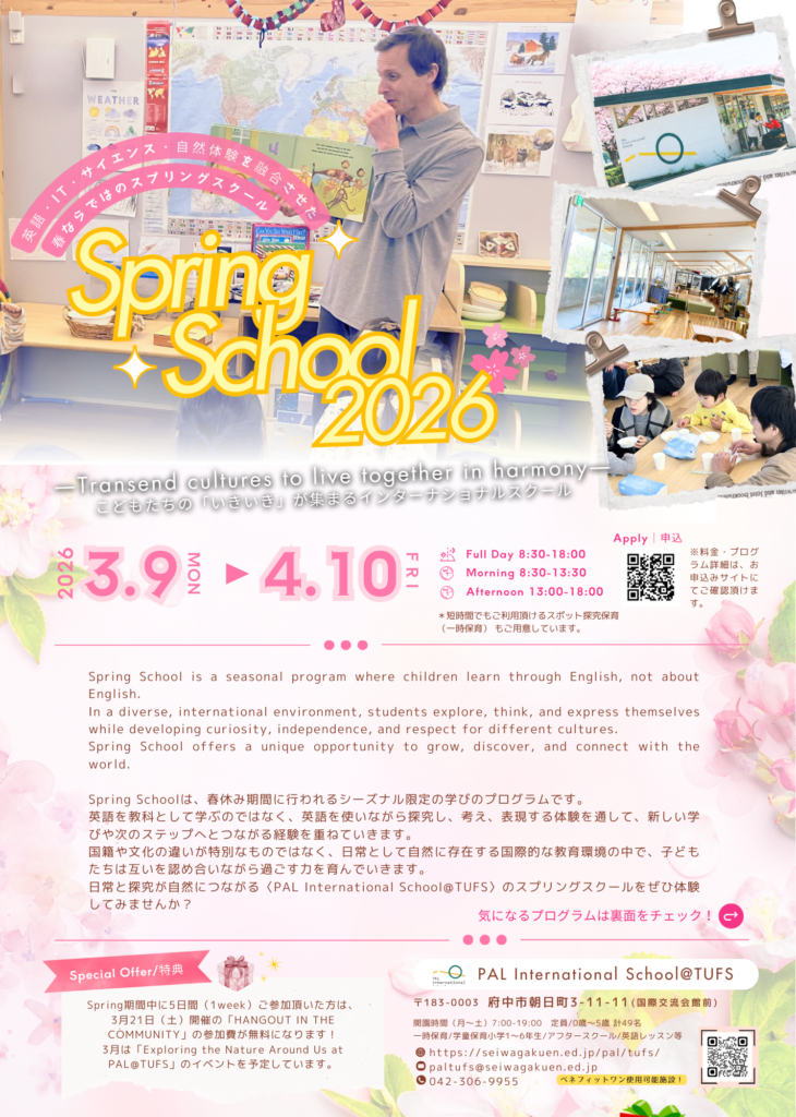 日常と探究が自然につながる〈PAL International School@TUFS〉のスプリングスクールをぜひ体験してみませんか?