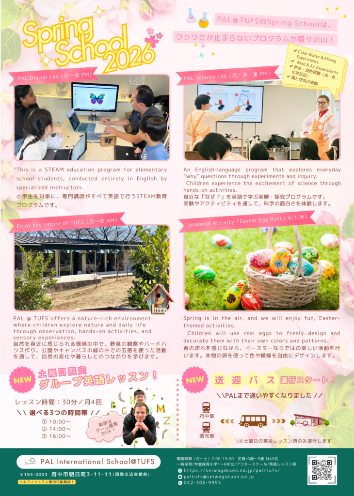 📍PAL International School@TUFS 府中市朝日町3-11-11(国際交流会館前)