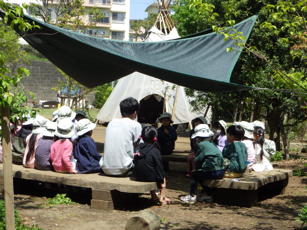 戸外で風を感じながら朝のサークルタイム