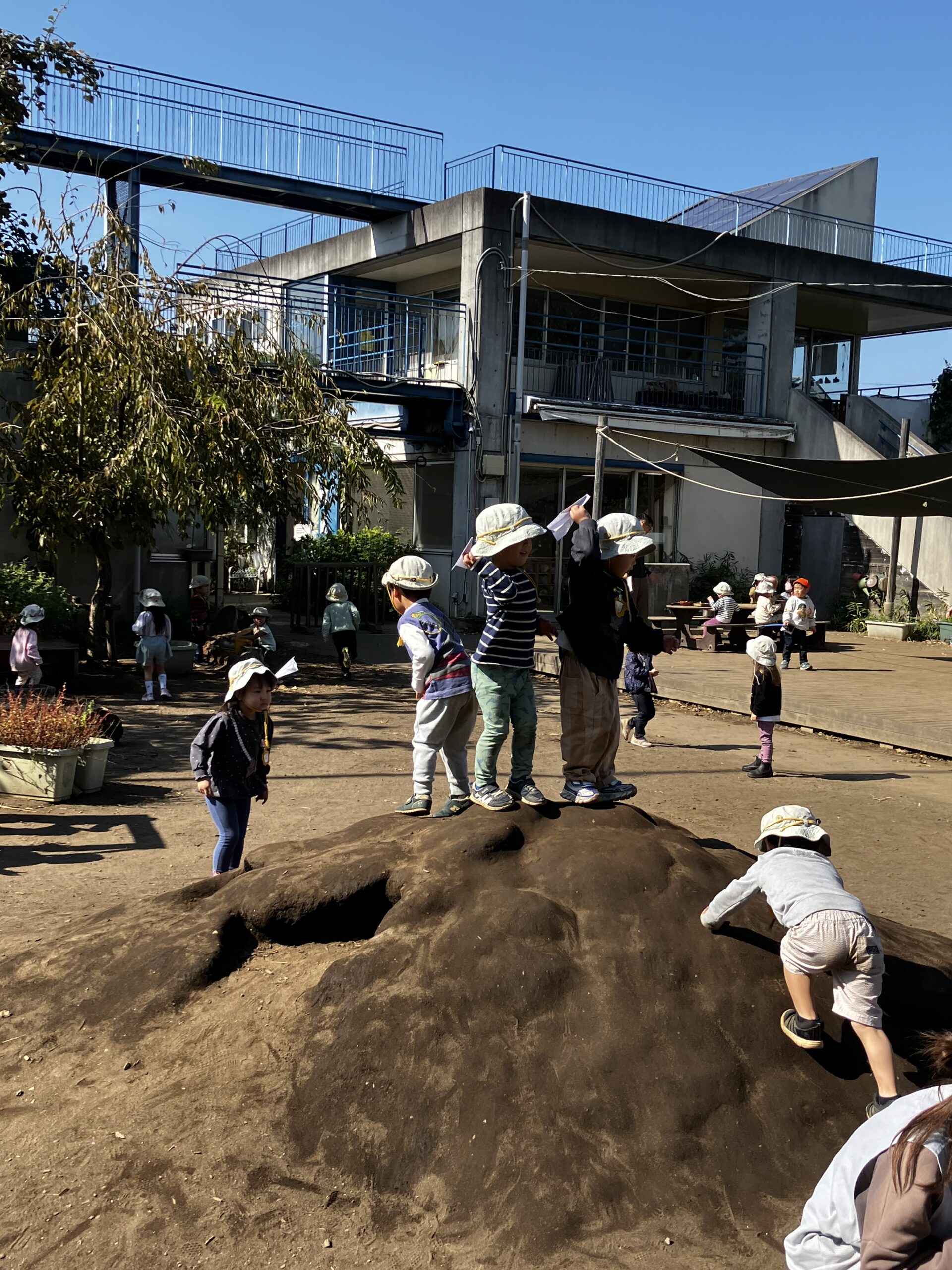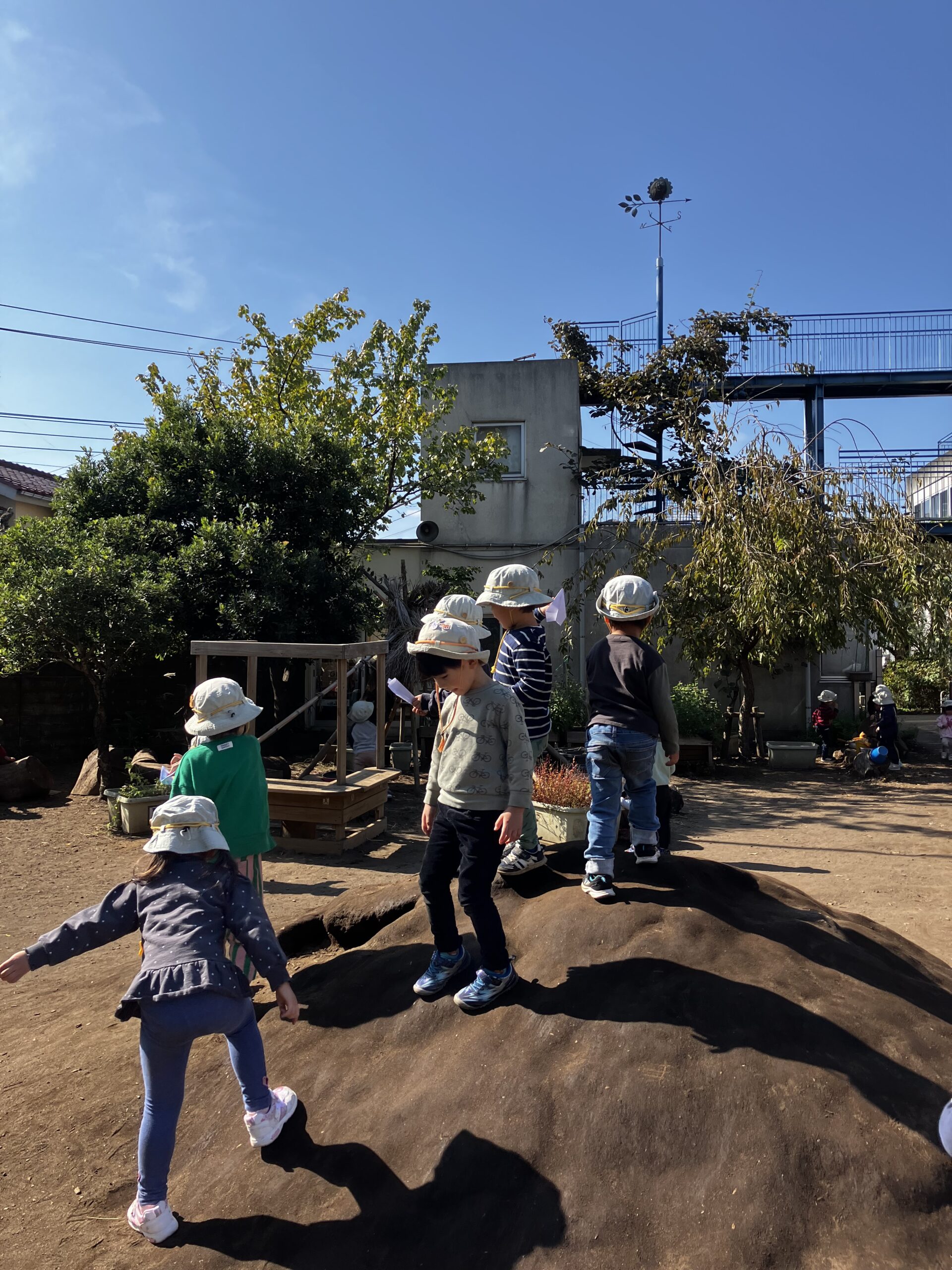 久しぶりの太陽・・・どりー広場では青空の下、いろんな遊びが繰り広げられます。紙飛行機を作って、飛ばしてみよう!少しでも高い場所から、飛ばしたら遠くまで飛んでいくかな?