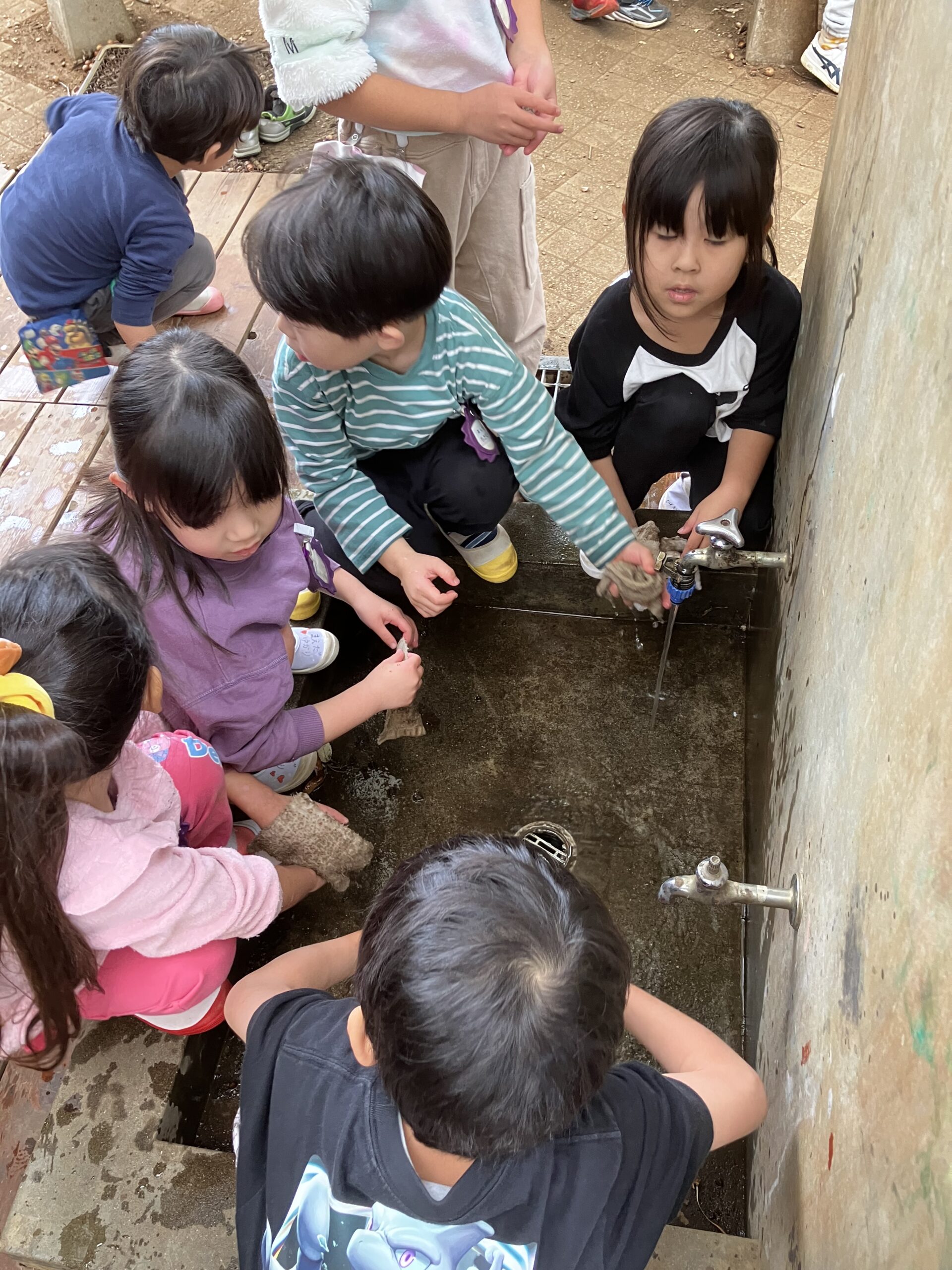 使った雑巾は、洗って絞って…。雑巾を絞る手つきもかっこいい!明日のため、だけではなく、自分たちがいつも使っているお部屋は、自分たちで整えていきます。