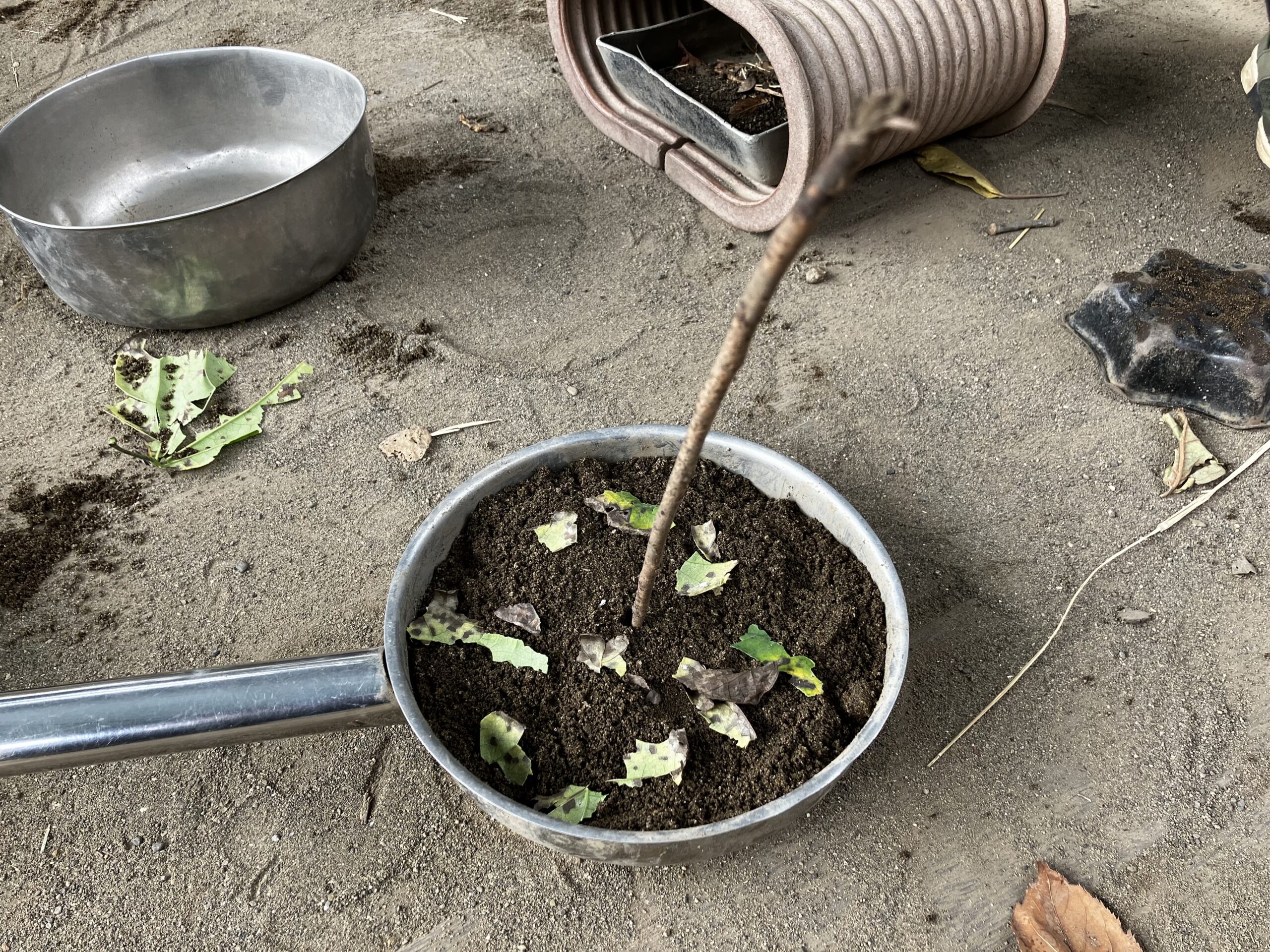 5歳児くすのき組とむくのき組、今日はのんびり砂遊び。