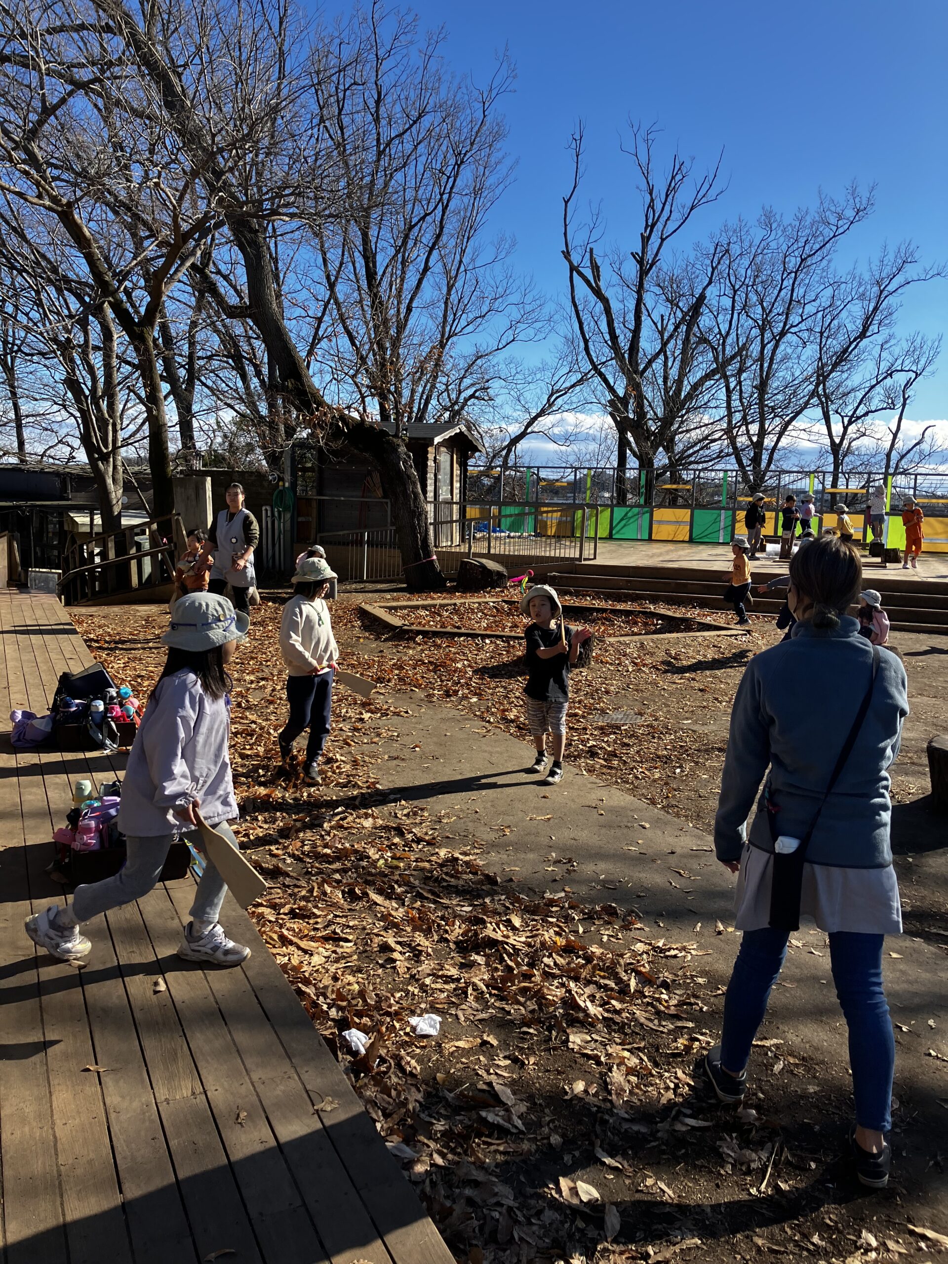 なかなかラリーが続かない。おとなも仲間に入るけれど、うまく続かない。それでも楽しくて、楽しくて、笑い声にあふれている町田自然幼稚園のどりー広場です。