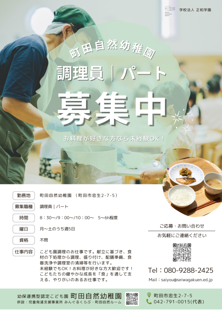 給食づくりを通して、こどもたちの健やかな成長を支えるお仕事です。