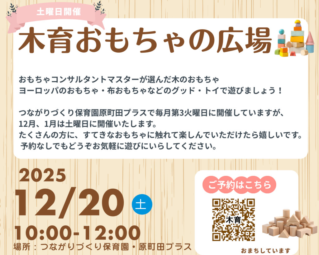 【つながりづくり保育園・原町田プラス】12/20(土)木育おもちゃの広場