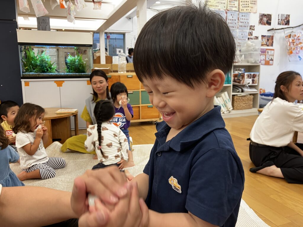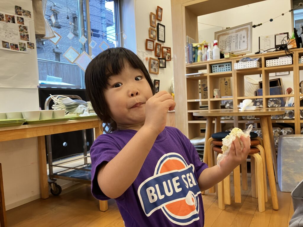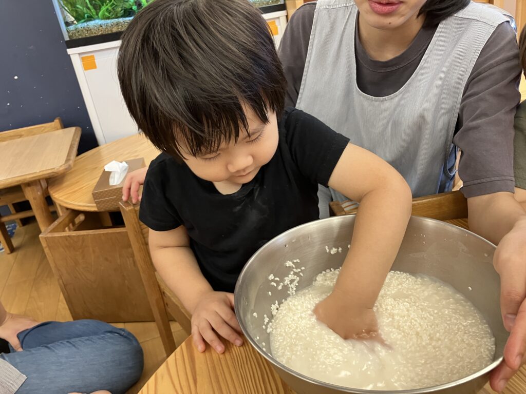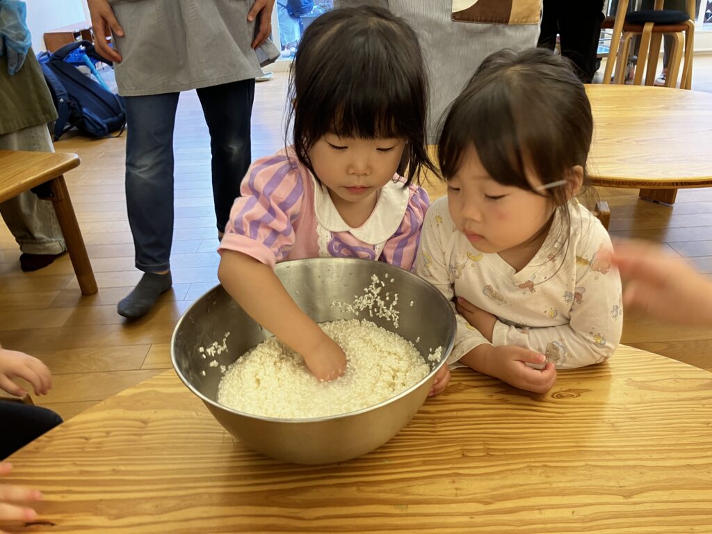 “自分たちで作った梅干しを食べたい”という気持ちからおむすび作りへと発展した2歳児のお友だち。