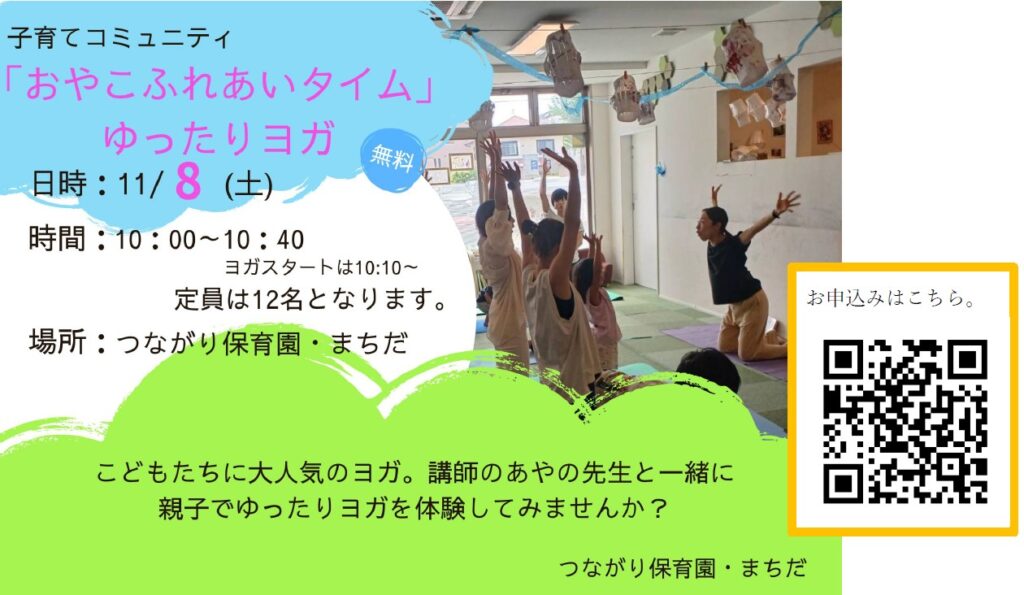 『おやこふれあいタイム』ゆったりヨガは来月も開催されますので、良かったら遊びに来てください。