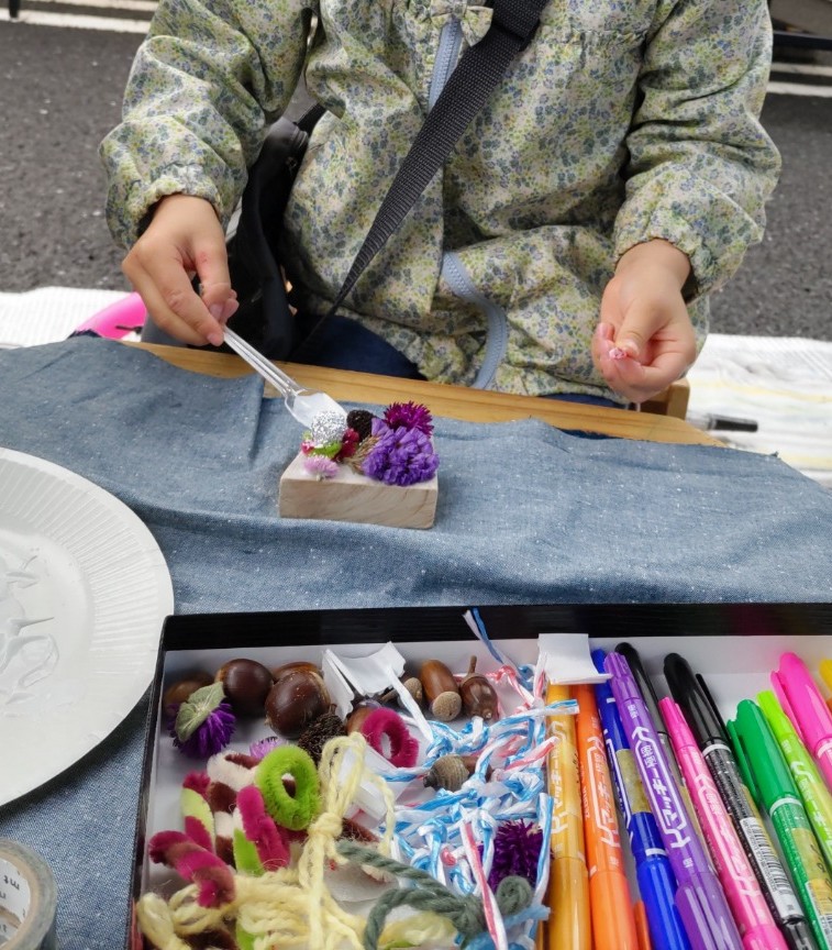 ザ・フェスタ栄通りとイイモノ○ごと祭りにつながり保育プロジェクトが出店し大好評だった「ちいさなアトリエ」を、11月8日(土)つながり保育園・まちだの子育てコニュニティ「ゆったりヨガ」のあとに開催いたします。