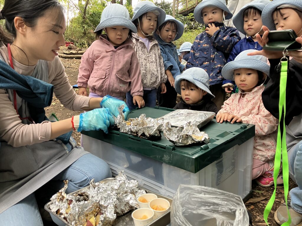 事前ににはみんなでお芋を買いに行き、前日にホイルで包んで準備をしました。
