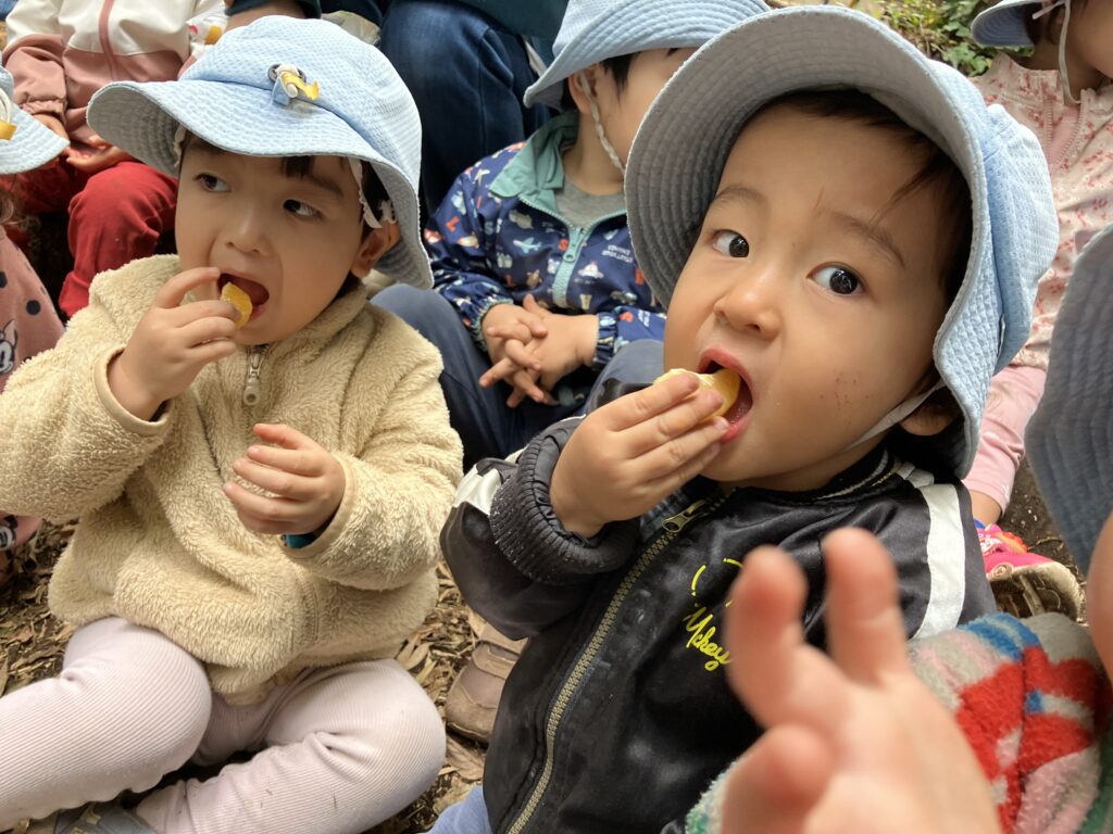「おいもやこうよ!」と以前おうちで焼き芋の経験を思い出した子の声があがり、みんなで焼き芋をすることに決まりました。
