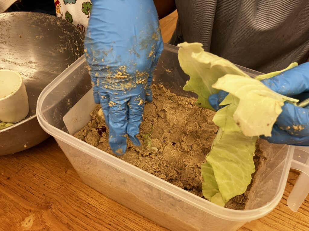 今回は、毎日朝と夕方にこどもたちと一緒にかき混ぜながら、くず野菜を入れてぬか床を育てています。