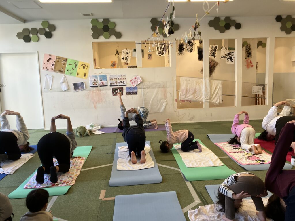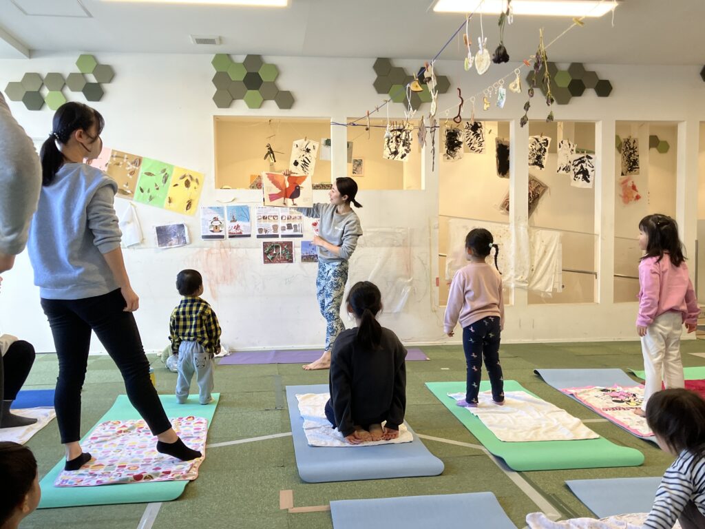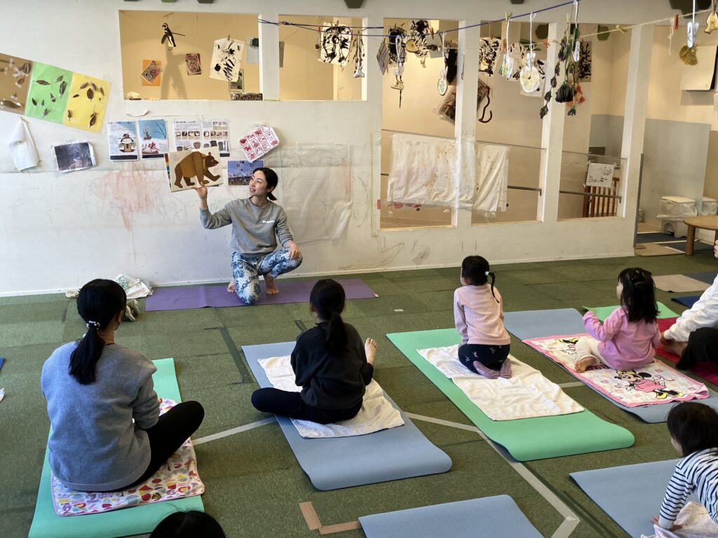 1月ということで、鏡餅に変身したり、絵本に沿って変身したりしながら、ゆったりとヨガを楽しみました。また、ヨガ後には保育園でリンゴを使って作っていたリンゴシロップを使って、温かいリンゴジュースも試飲していただき、「おいしいね。」とゆったりとした空間も広がりました。