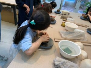 親子で陶芸教室に参加しました。色々な作業工程があり、説明を聞く時間も多かったのですが、それぞれ個性あふれる作品をつくることができました。1か月後、完成予定です。焼きあがった作品で、次は茶道を楽しむことができるかな?