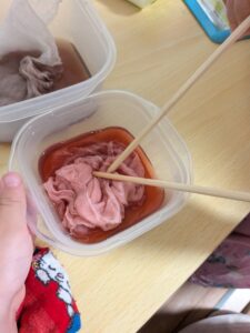 みんなが散歩で集めて来た“くさいちご”も染め物出来るかもね、と次に進みそうです。