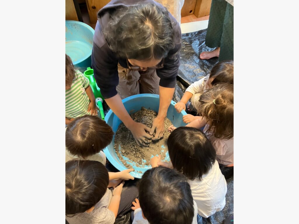 先日、よよぎ本園で浅井竜介先生(陶芸家・埼玉おもちゃ美術館館長)と一緒に土に触れてあそびました。